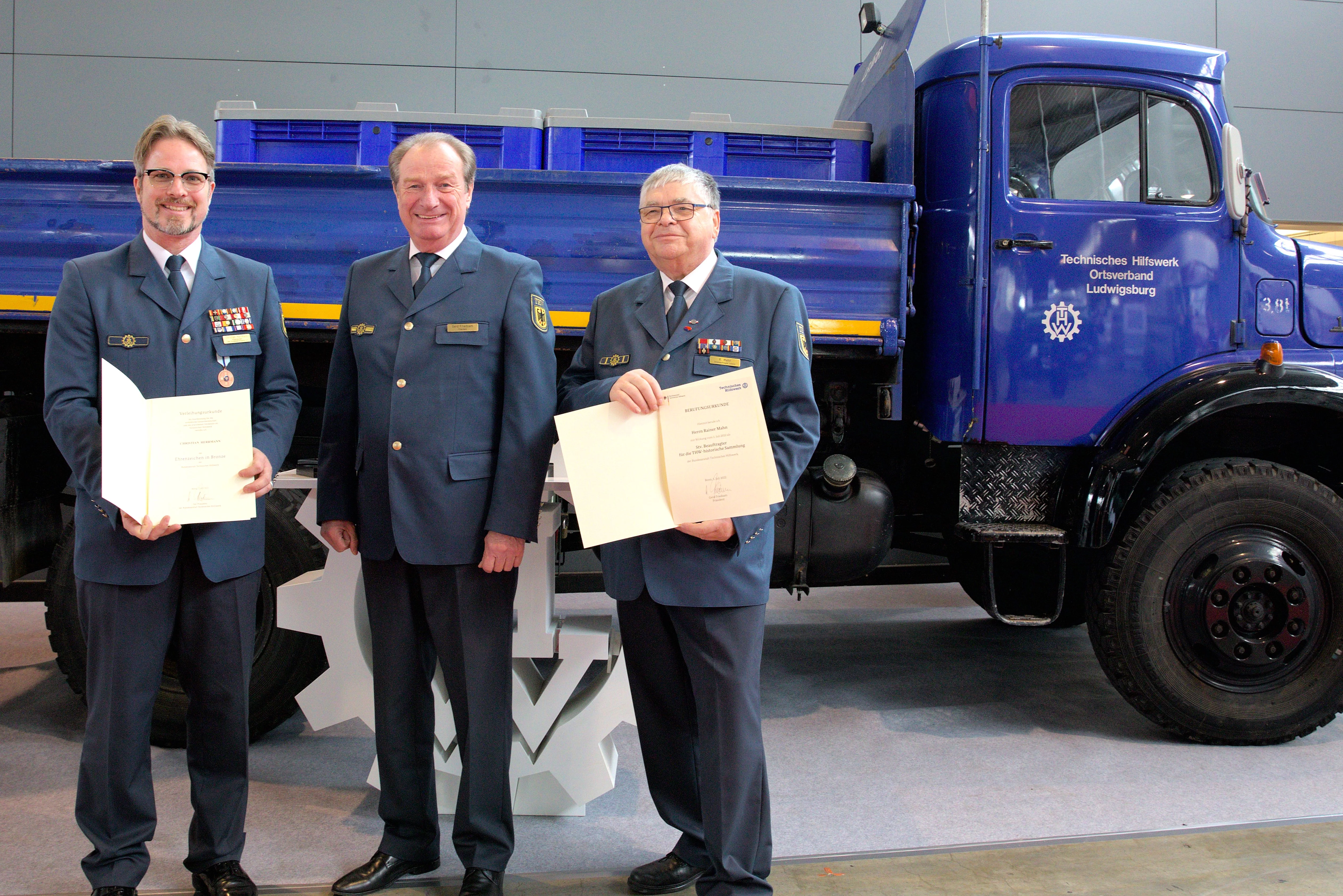 Auf der Retro Classic wurden Christian Herrmann und Rainer Mahn von THW-Präsident Gerd Friedsam offiziell zum Beauftragten und zum Stellv. Beauftragten der THW-historischen Sammlung bestellt.