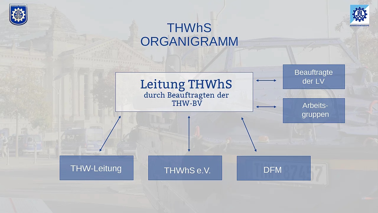 Ziel der neuen Struktur ist außerdem, dass die THWhS ihre Forschungsergebnisse bündelt und vor allem publiziert. Die „THW-Historiker“ stecken viel Zeit und Herzblut in die Bewahrung und Erforschung der THW-Geschichte. Diese wollen wir zeigen und die Menschen darüber informieren. Das wird einerseits im zukünftigen gemeinsamen Museum der Deutschen Feuerwehren & des Technischen Hilfswerks erfolgen und andererseits durch Teilnahmen an Ausstellungen, Oldtimer Rallyes und der Veröffentlichung eigener Publikationen.“
