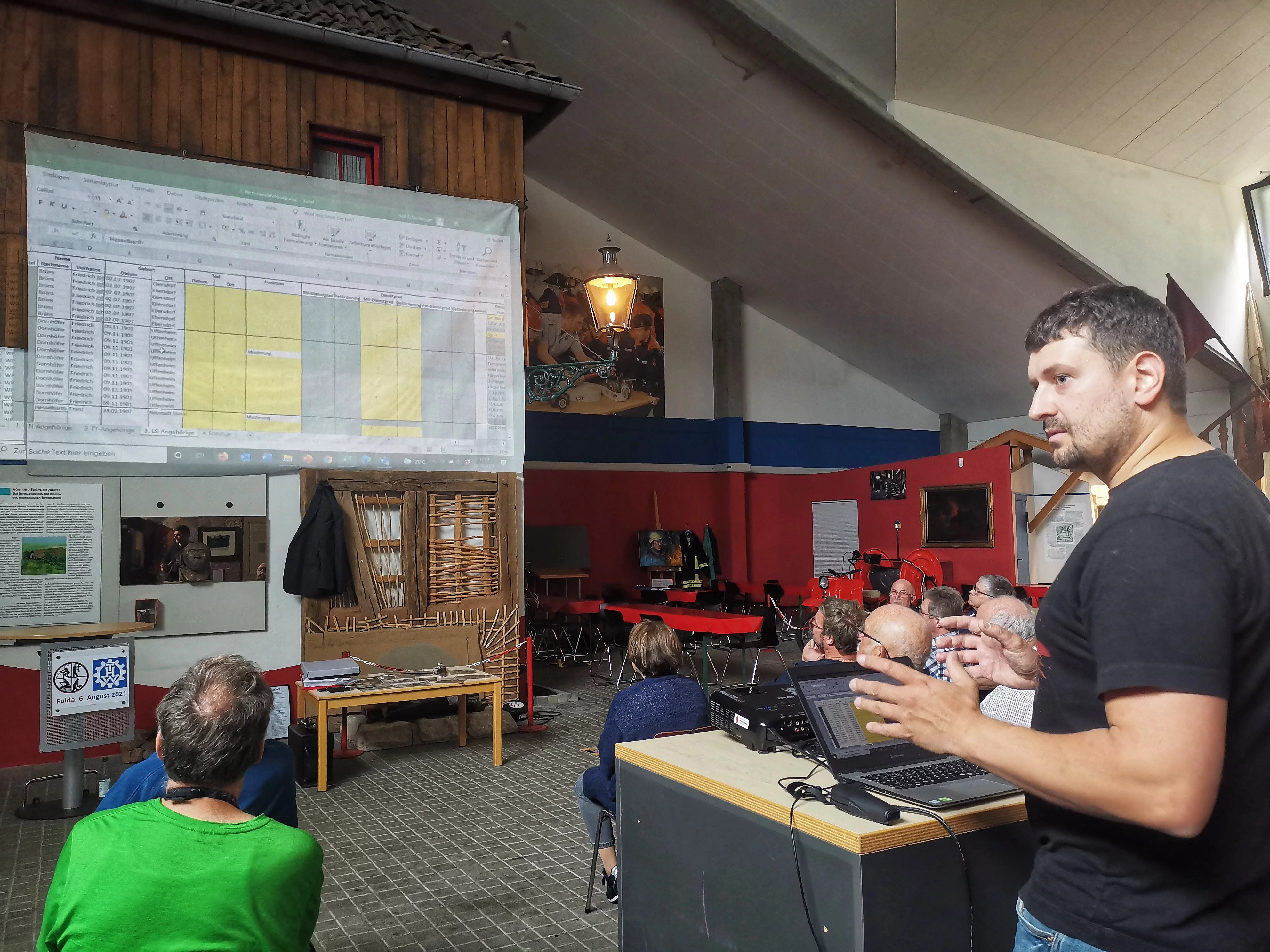 Wie engagiert und professionell bisher außerhalb der THWhS geforscht wird, bewies der Vortrag von Cedrik Schlag. Mit gerade einmal 35 Jahren ist er schon seit über 20 Jahren im THW und engagiert sich in den verschiedensten Funktionen im Orts- und Landesverband sowie in der Helfer- und Landeshelfervereinigung Niedersachsen. Seit 10 Jahren widmet er sich zusätzlich der THW-Geschichte. Sein Spezialgebiet ist die „Technische Nothilfe 1919 – 1945“. Cedrik Schlag verfügt über die bis dato größte private Sammlung an Fotos, Artefakten und Materialien zu diesem Thema. In einem Kurzvortrag im Deutschen Feuerwehr Museum stellte er den Teilnehmenden seine umfangreiche Forschungsarbeit vor und bot seine künftige Mitarbeit in der historischen Sammlung an.