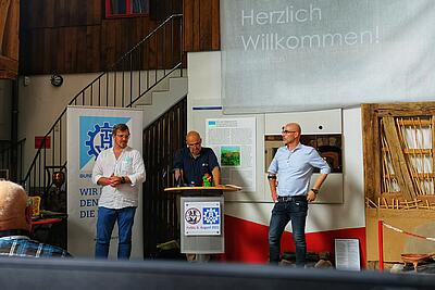 v.l.n.r. Christian Herrmann - THW-BV Vizepräsident; Rolf Schamberger - Leiter DFM und Nicolas Hefner - Referatsleiter Ehrenamt begrüßten alle Teilnehmende zum Kennenlernen in Fulda.