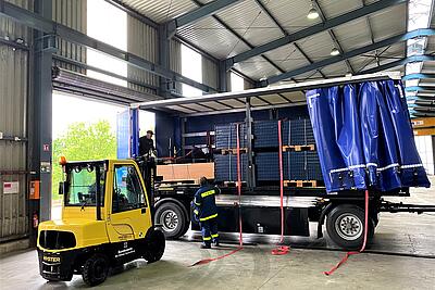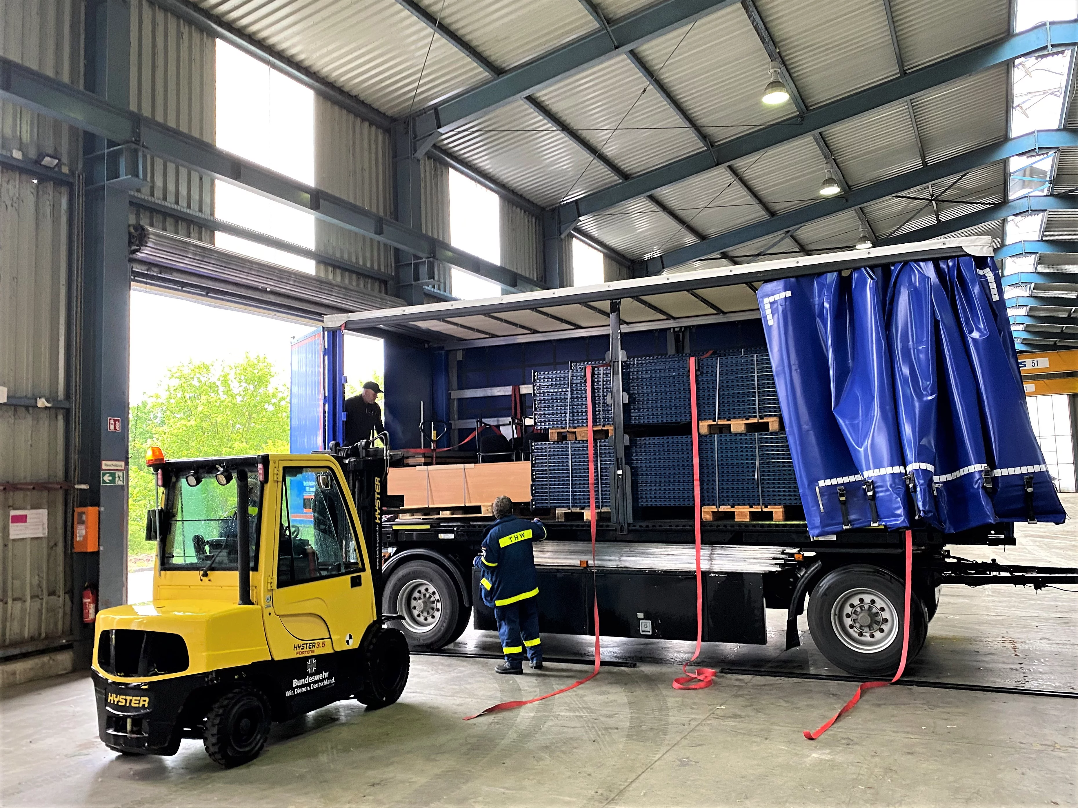 Am 1. Juni 2021 erreichten die ersten sechs Fahrzeuge das neue Lager in der Nähe von Fulda. Beim Transport wurde das THW von der Bundespolizei unterstützt. Bereits Ende Mai 2021 wurden 137 Regalmeter bzw. 588 Palletten-Stellplätze in der knapp 1800 Quadratmeter großen Halle aufgebaut.