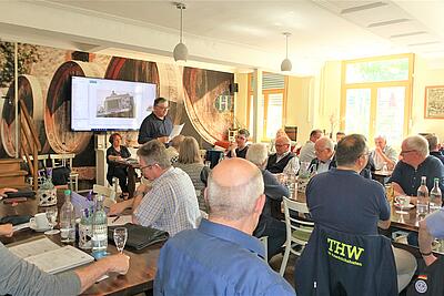 Rainer Mahn, kommissarischer stellvertretender Leiter der THWhS, bat in seinem Bericht um Geduld bei der Integration der Historischen Sammlung in die THW-BV. Neue Strukturen müssen erarbeitet, Kommunikationswege und Zuständigkeiten neu gedacht werden. Ab dem 1. Juni 2022 steht in der THW-Bundesvereinigung eine hauptamtliche Ansprechperson für alle Belange rund um die Historische Sammlung zur Verfügung. Diese neu geschaffene Position soll helfen, den Integrationsprozess optimal zu gestalten und das Projekt „Helfen in der Not - Museum der Deutschen Feuerwehren und des Technischen Hilfswerks“ voranzutreiben.
