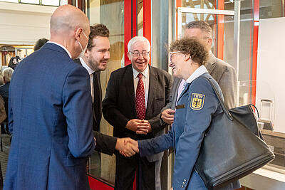 Im Anschluss eröffnete THW-Vizepräsidentin Sabine Lackner zusammen mit Rolf Schamberger die Ausstellung zu Otto Lummitzsch. Es ist die Archivschau der THW-historischen Sammlung zu dem Gründer des Technischen Hilfswerks und seiner Vorgängerorganisation, der Technischen Nothilfe. Die Besucher lernen Otto Lummitzsch als Organisator technischer Hilfe für den Notfall, aber auch als Ingenieur, Pionieroffizier und Mensch kennen. Die Schau gibt einen Einblick in eine faszinierende Person, die in fünf Herrschaftssystemen - Kaiserreich, Weimarer Republik, NS-Diktatur, frühe Nachkriegszeit unter alliierter Militärverwaltung und die junge Bundesrepublik - gelebt und gewirkt hat. Das Helfen in der Not war stets Antrieb seines Handelns, vor allem in den politisch-gesellschaftlich bewegten Zeiten der Weimarer Republik und der jungen Bundesrepublik Deutschland.