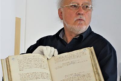 Im Anschluss hörten alle Beteiligten einen Vortrag von Dr. Thomas Heiler, Amtsleiter des Kulturamtes der Stadt Fulda und Leiter des Stadtarchivs der Stadt Fulda. Er stellte seine Arbeit im Archiv vor und erklärte den Umgang mit Archivalien und Digitalisierung. Er konnte viele nützliche Impulse zur zukünftigen Arbeit der THWhS liefern.